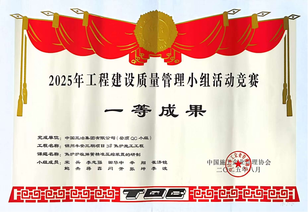 與往年相比,中國三冶今年獲獎數(shù)據(jù)實現(xiàn)多項突破:一等獎數(shù)量同比增長33.33%,二等獎增長50%,創(chuàng)新型成果更是翻倍至4項,增幅達100%。其中,工業(yè)工程公司"焦爐爐柱彈簧精準壓縮裝置的研制"成果,不僅以遼寧省綜合評分第一名的成績斬獲"最佳發(fā)布獎",更通過將彈簧壓縮精度控制在"±1mm"的嚴苛標準內,為同業(yè)同類工程提供了可復制的精準質量管控方案。這正是中國三冶質量管理從"解決問題"向"創(chuàng)造標準"轉型升級的生動體現(xiàn)。